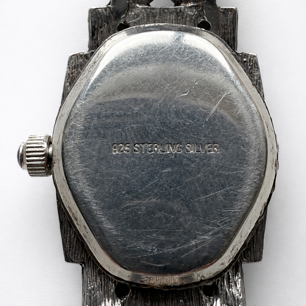 Condition summary: There is light visible surface scratching to the sterling sliver watch back.