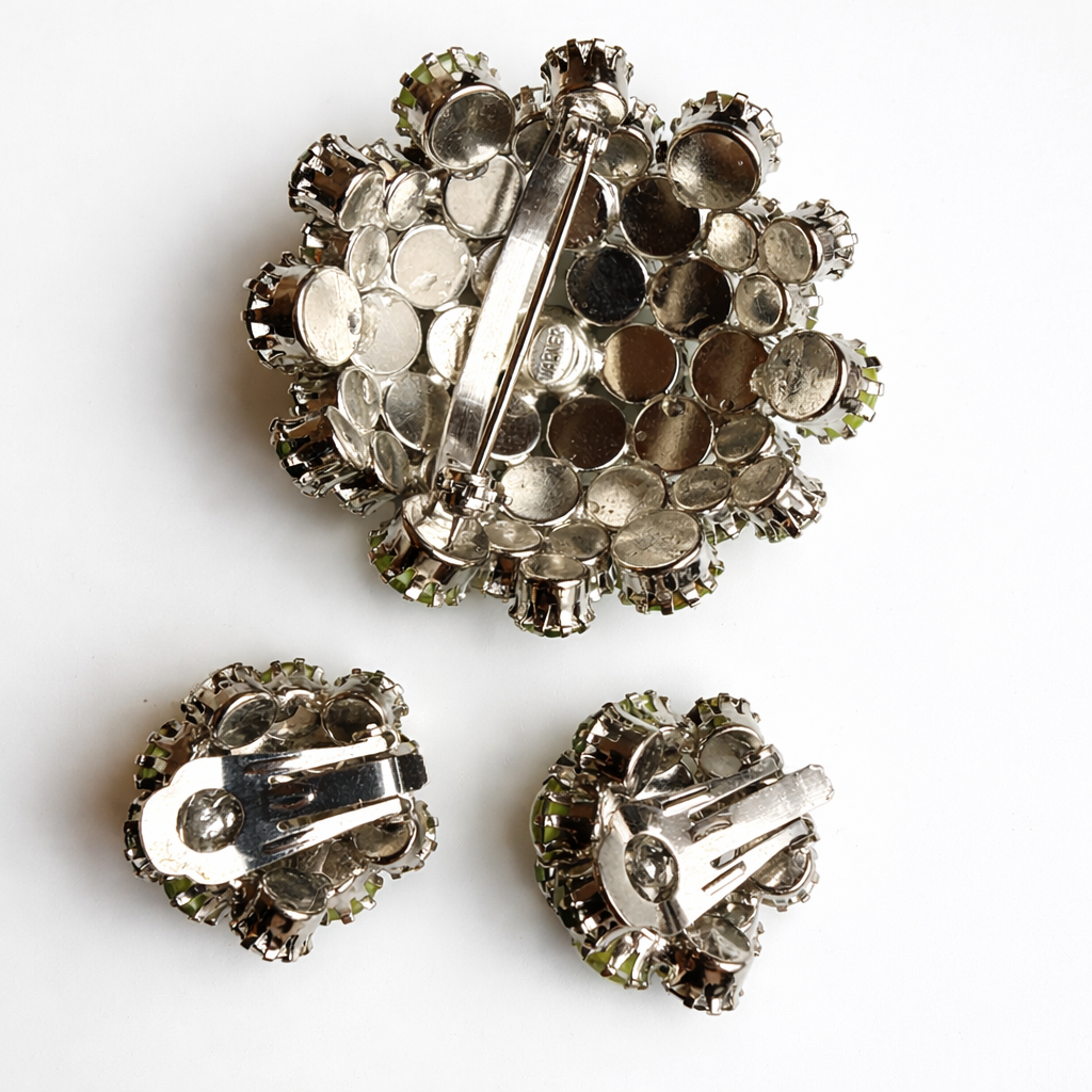 Warner Green Rhinestone Brooch and Earring Set
